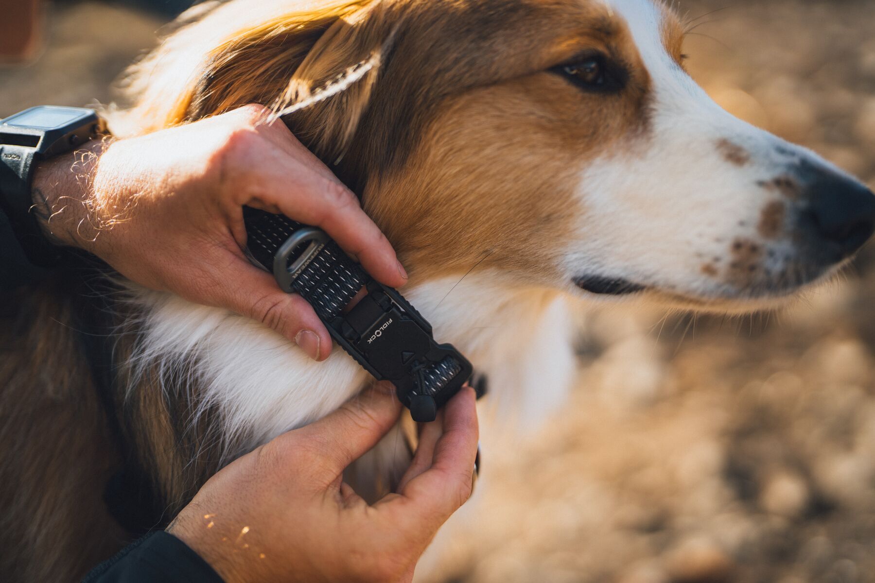 The standout feature here is the Fidlock® magnetic buckle. This self-aligning design allows you to clip the collar on and off quickly and easily with one hand — even when wearing gloves — making it incredibly practical for real-world use.